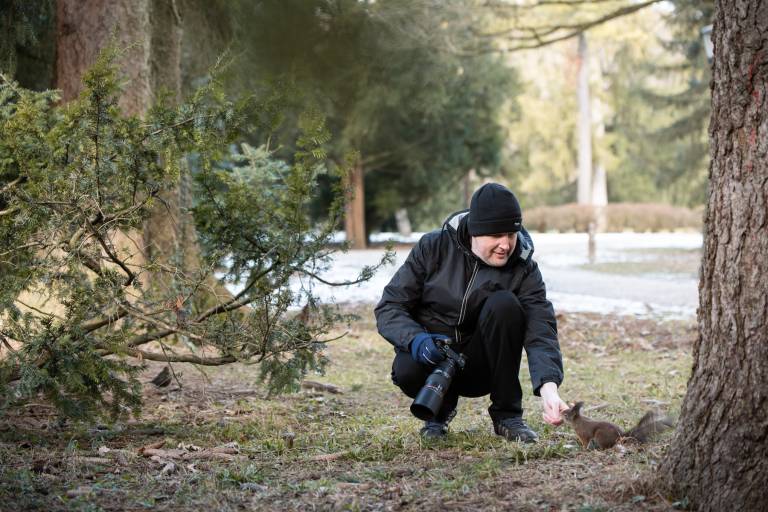 »Sprostim se. Če ne bi živel izven Ljubljane, bi sem prihajal bolj pogosto. Lahko bi rekel, da je to zame neke vrste meditacija. Veverice so res nekaj posebnega,« pripomni.