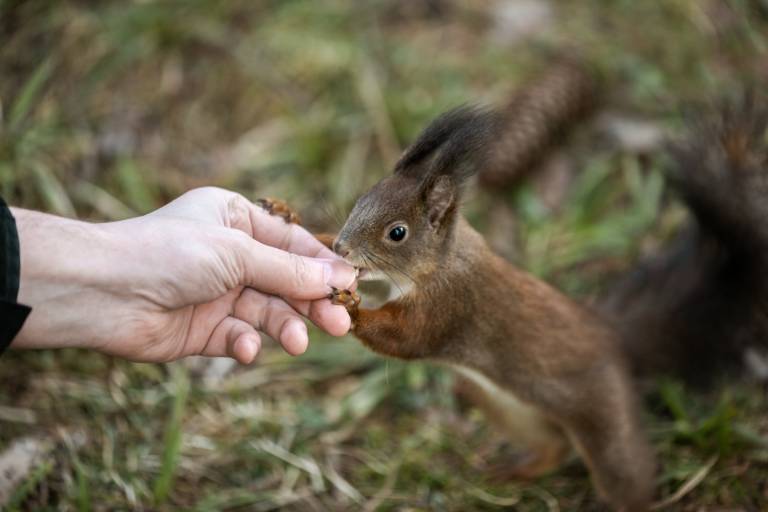 Med vevericami je že takoj opazil razlike, saj nekatere takoj pritečejo po hrano, druge pa so bolj plašne.