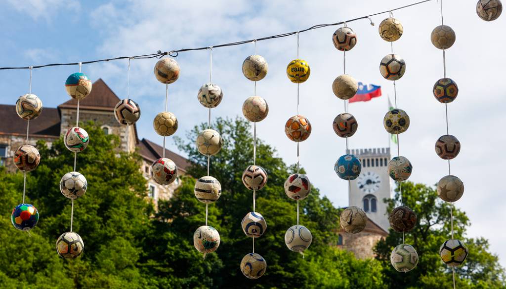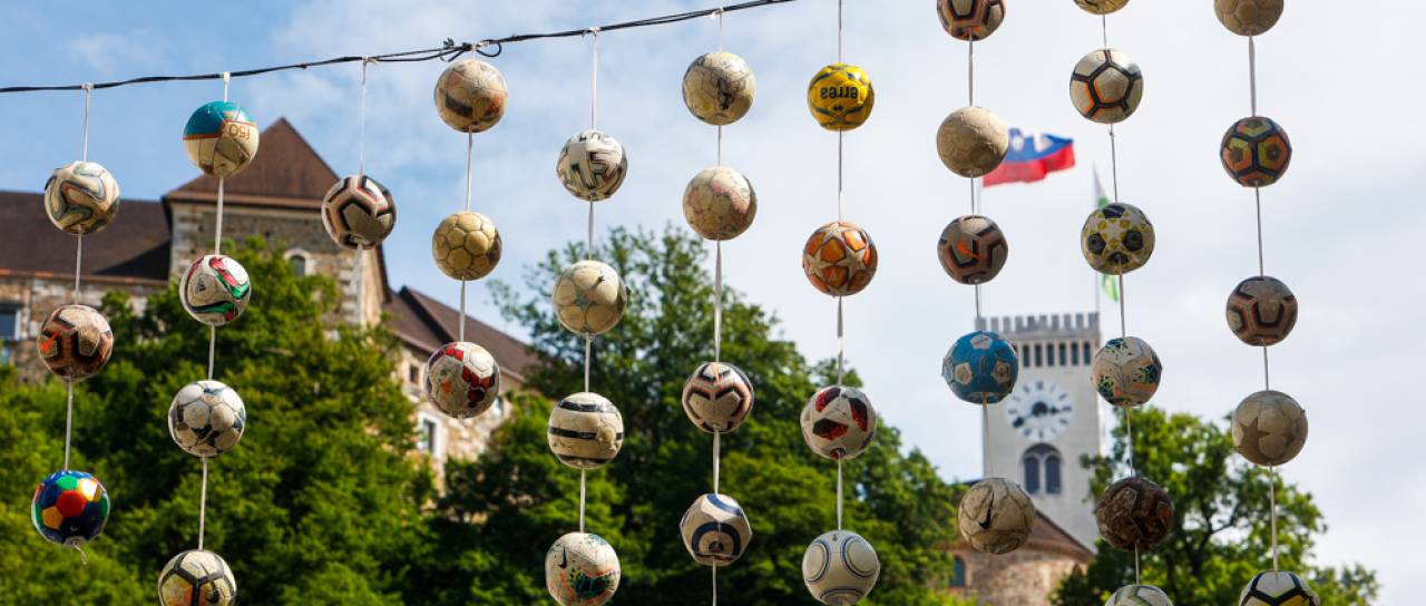 V sklopu priprav na UEFA evropsko prvenstvo do 21 let, ki je potekalo do 6. junija v Ljubljani, je Mestna občina Ljubljana Stritarjevo ulico okrasili z odsluženimi nogometnimi žogami.