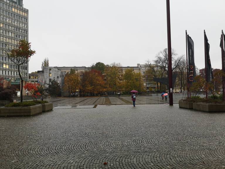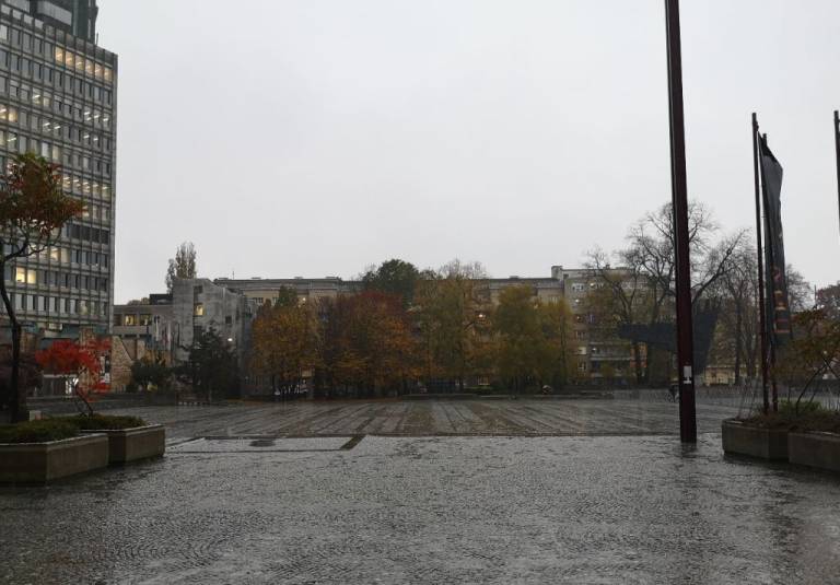 15.00 - Na Trgu republike še ni protestnikov, trg pa je ograjen z ograjo.