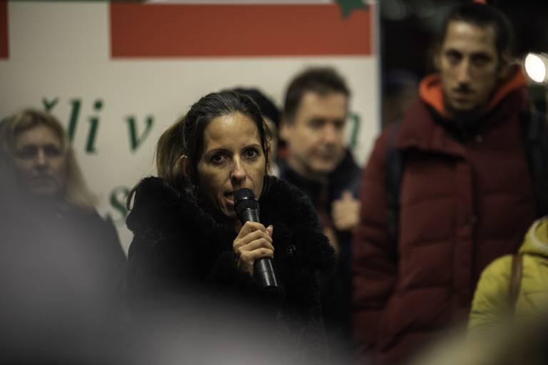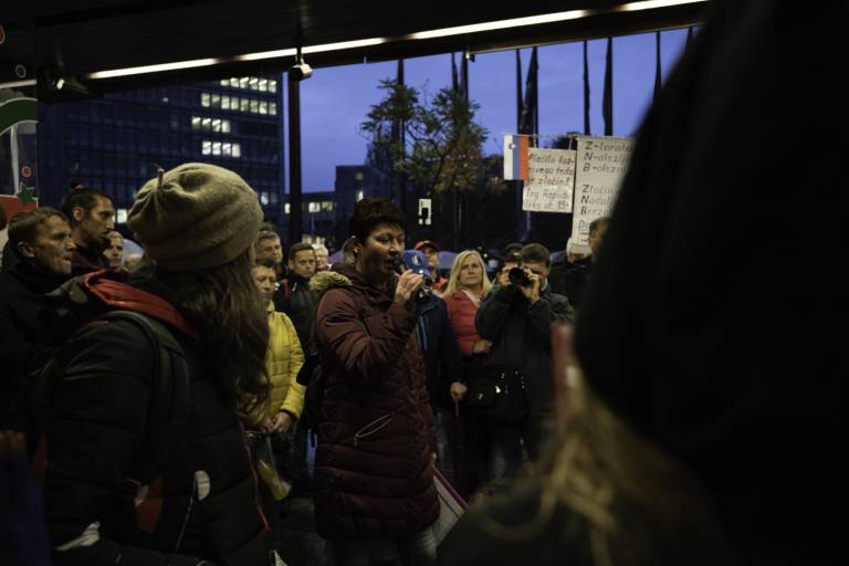 16.40 - »Številke so en velik nateg. Upam, da ne nosite mask,« danes poziva eden od govornikov na protestih.