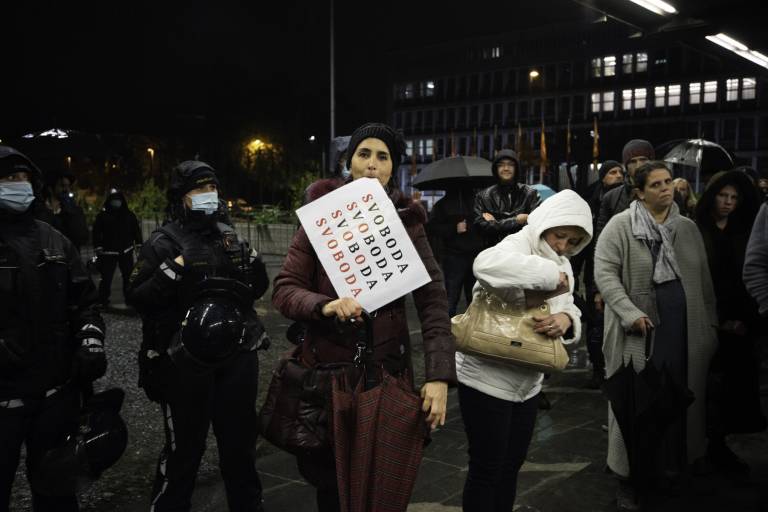 Na Trgu republike se je ob 15. uri začel osmi sredin protest proti koronskim ukrepom.