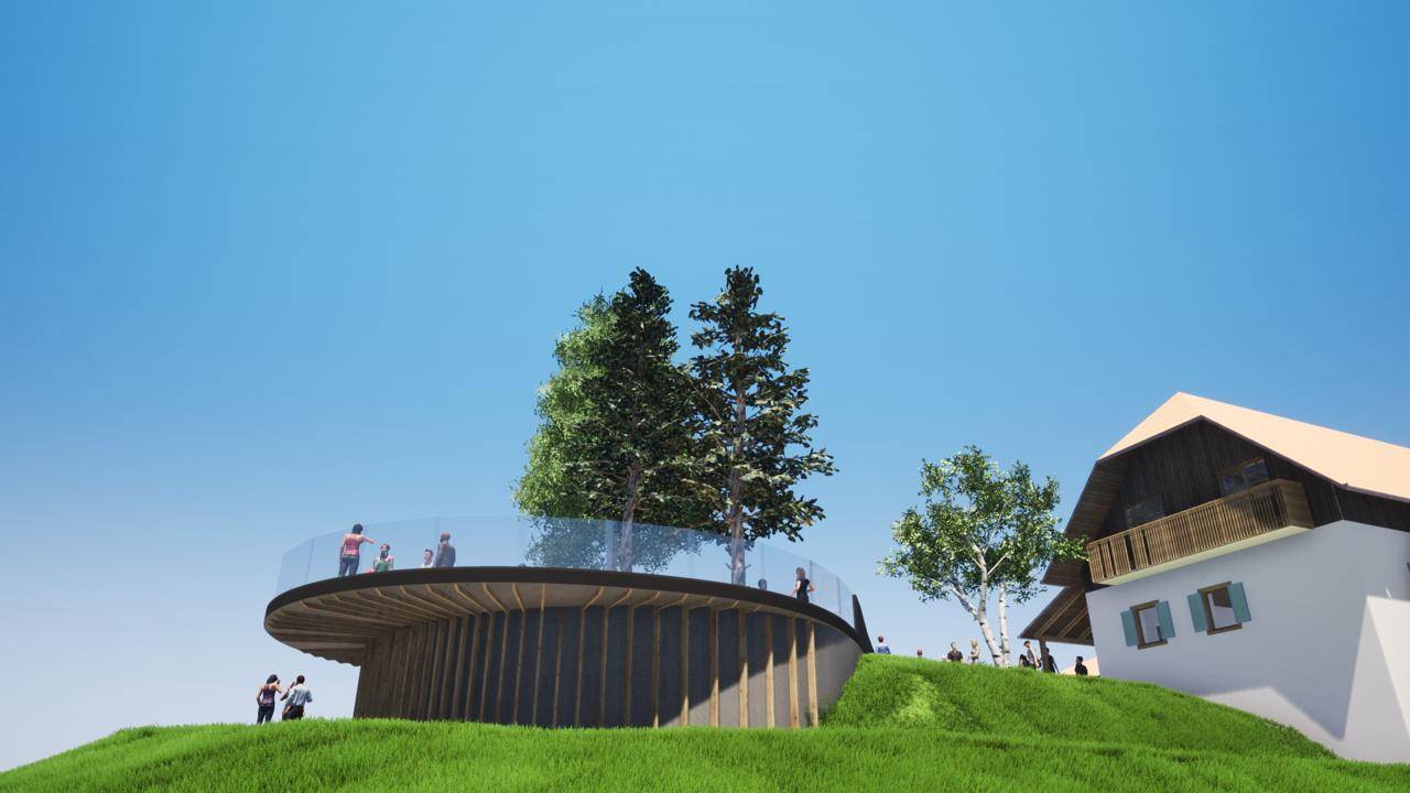 Pogled na edinstveno cesto v obliki srca je najlepše vidno na terasi turistične kmetije Dreisiebner, ki se je sedaj odločila za milijonsko investicijo prenove in preoblikovanja razgledne terase.