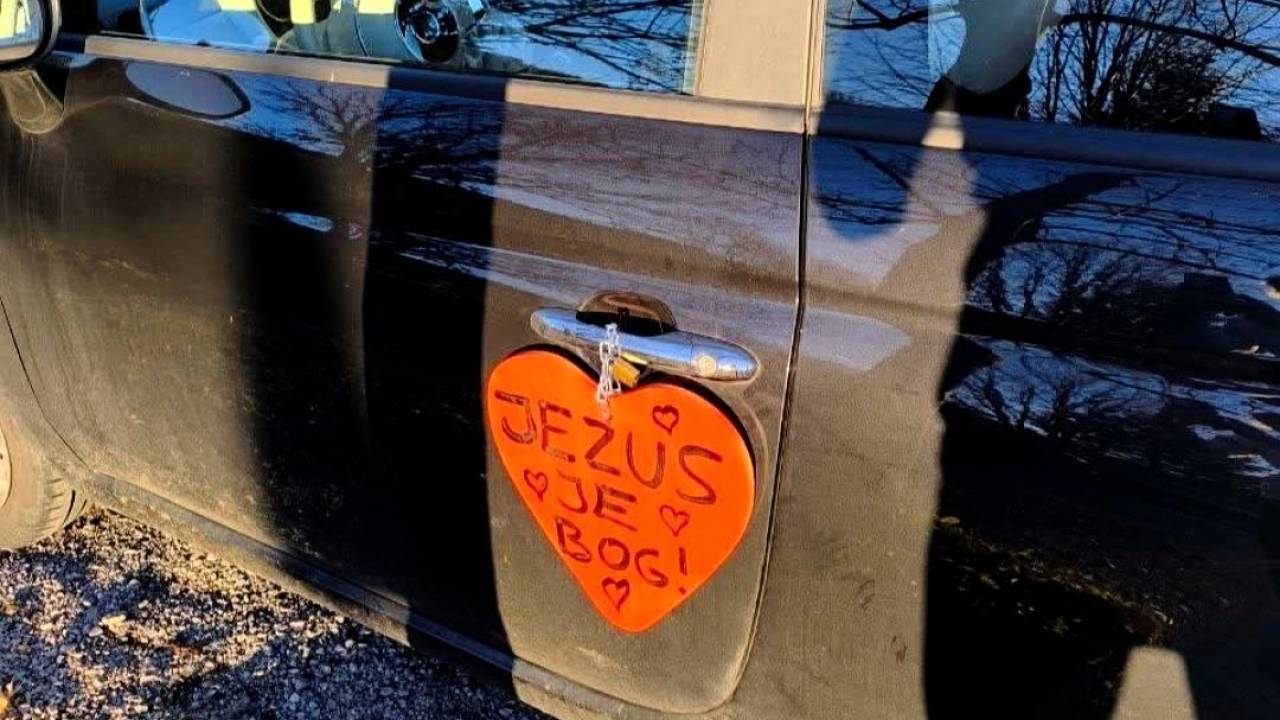 Nenavadno dogajanje je te dni preplavilo družbena omrežja. Dva uporabnika sta delila skoraj identično izkušnjo – ob vrnitvi k parkiranim avtomobilom sta na kljuki voznikovih vrat opazila obešeno ključavnico, na kateri je bilo pritrjeno ročno napisano sporočilo: »Jezus je Bog.«