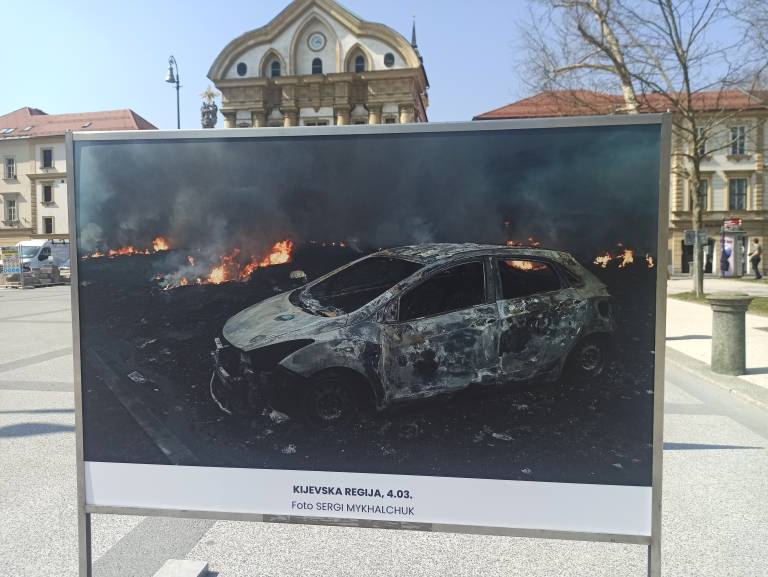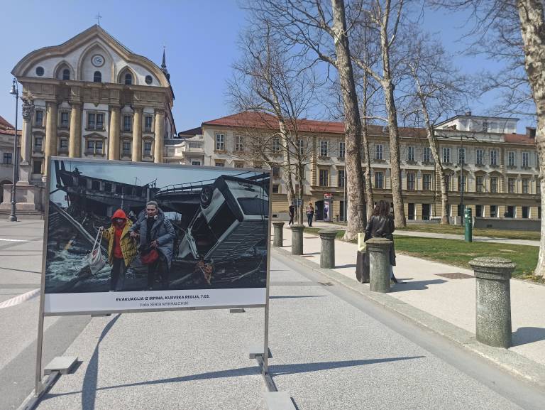 Na Kongresnem trgu si je med 21. marcem in 6. aprilom mogoče ogledati razstavo z naslovom 'Vojna v središču Evrope', ki fotografsko poroča o ruskem napadu na Ukrajino.