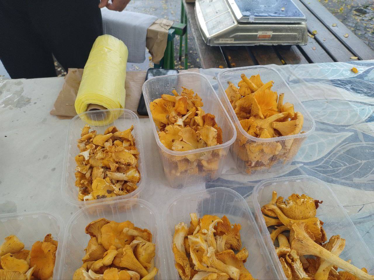 Poleg jurčkov ponujajo še lisičke, po ceni sedem evrov za kilogram za bolj majhne, tudi po pet evrov za narezane in deset evrov za večje lisičke.