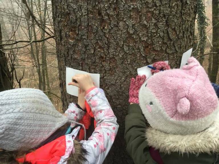 »Zanimivo je opazovati, kako otroci hitro najdejo vse nove toteme, so vedoželjni in jih zanima, kaj na njih piše. V zimskem času smo se veliko pogovarjali tudi o vrstah dreves in učilnica z debli je bila kot naročena za našo temo«, je dejal Aljaž Levičar, vzgojitelj skupine Ježi.