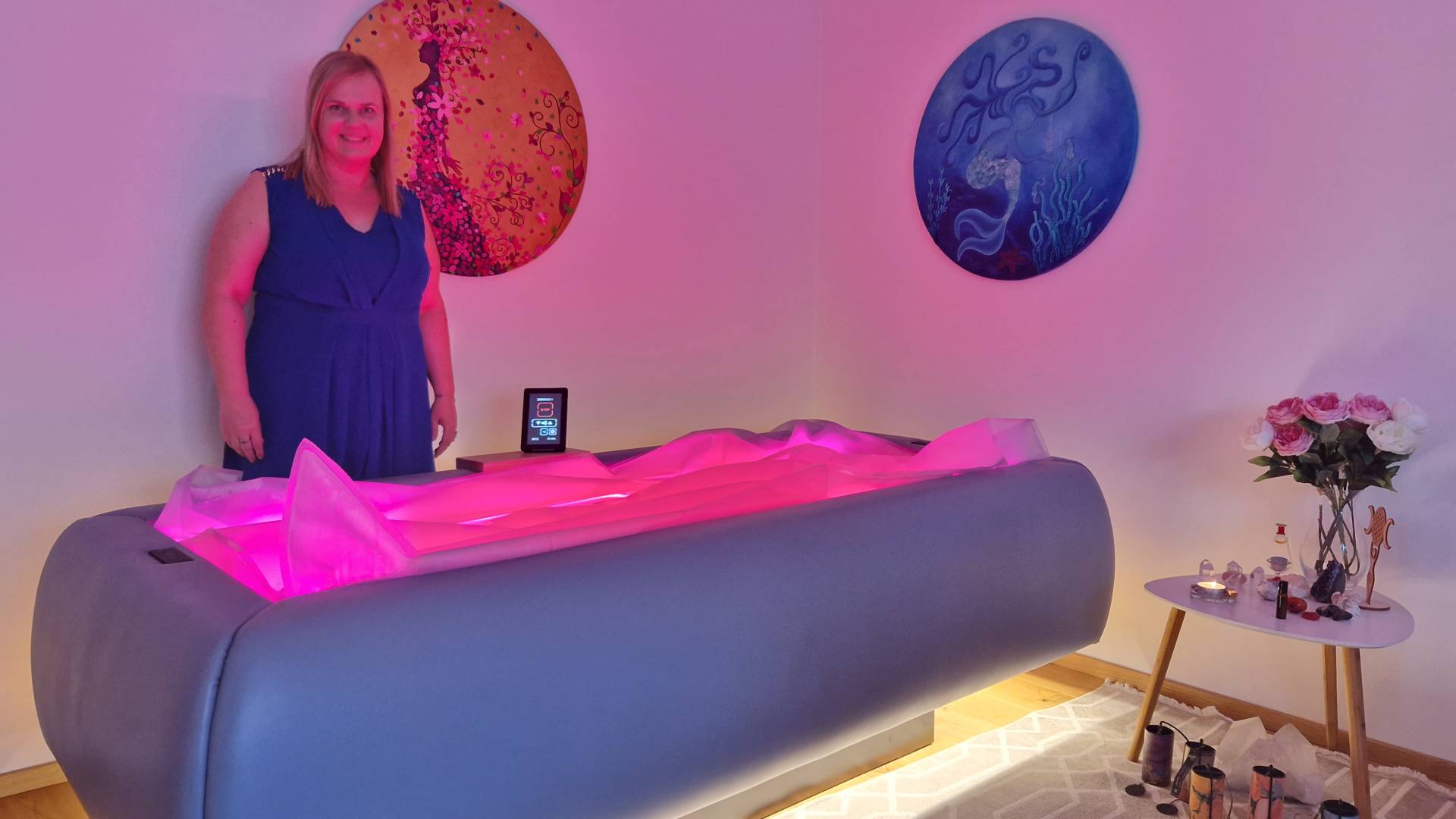 Tovrstno posteljo prva pripeljala v Slovenijo. Med lebdenjem se telo popolnoma sprosti, mišice lahko popustijo, čeljust se odklene, možgani se osvobodijo zunanjih dražljajev.
