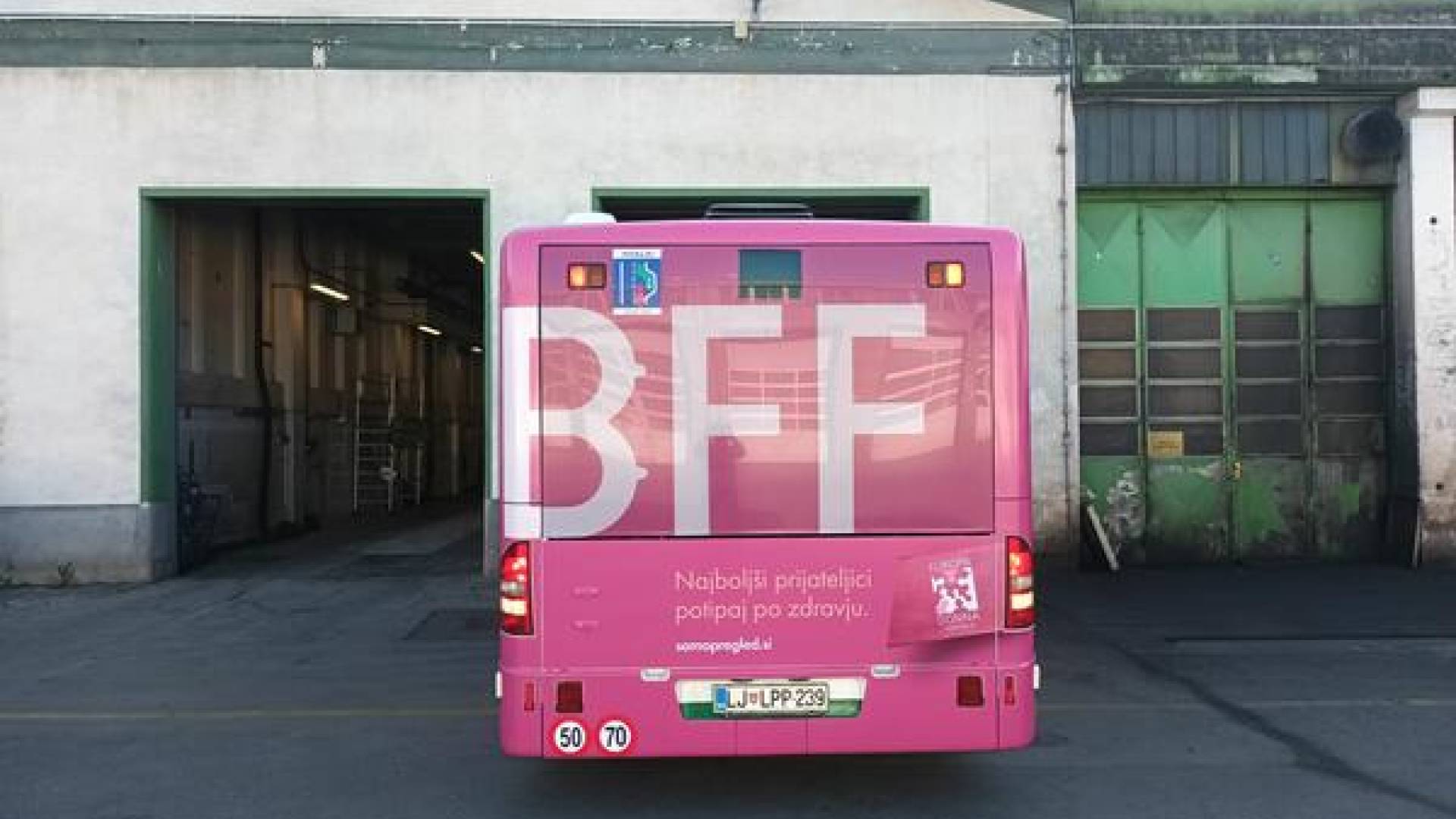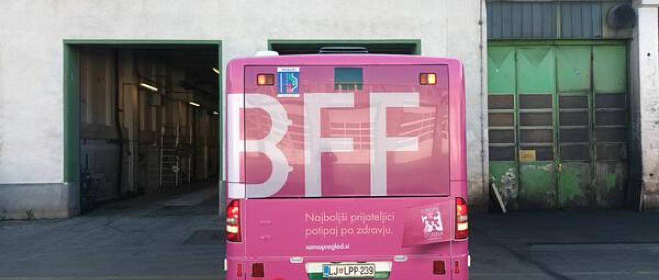 Že deveto leto zapored v rožnatem oktobru po Ljubljani vozi BFF mestni avtobus v rožnati podobi, da bi ženske spodbudili k rednemu mesečnemu samopregledovanju dojk.
