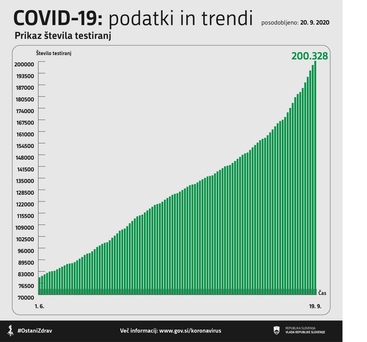 V Sloveniji so včeraj, 19. septembra 2020, opravili 2288 testiranj na novi koronavirus. Potrdili so 111 novih okužb. Za primerjavo: dan prej so ob 3070 testiranjih potrdili 114 novih okužb.