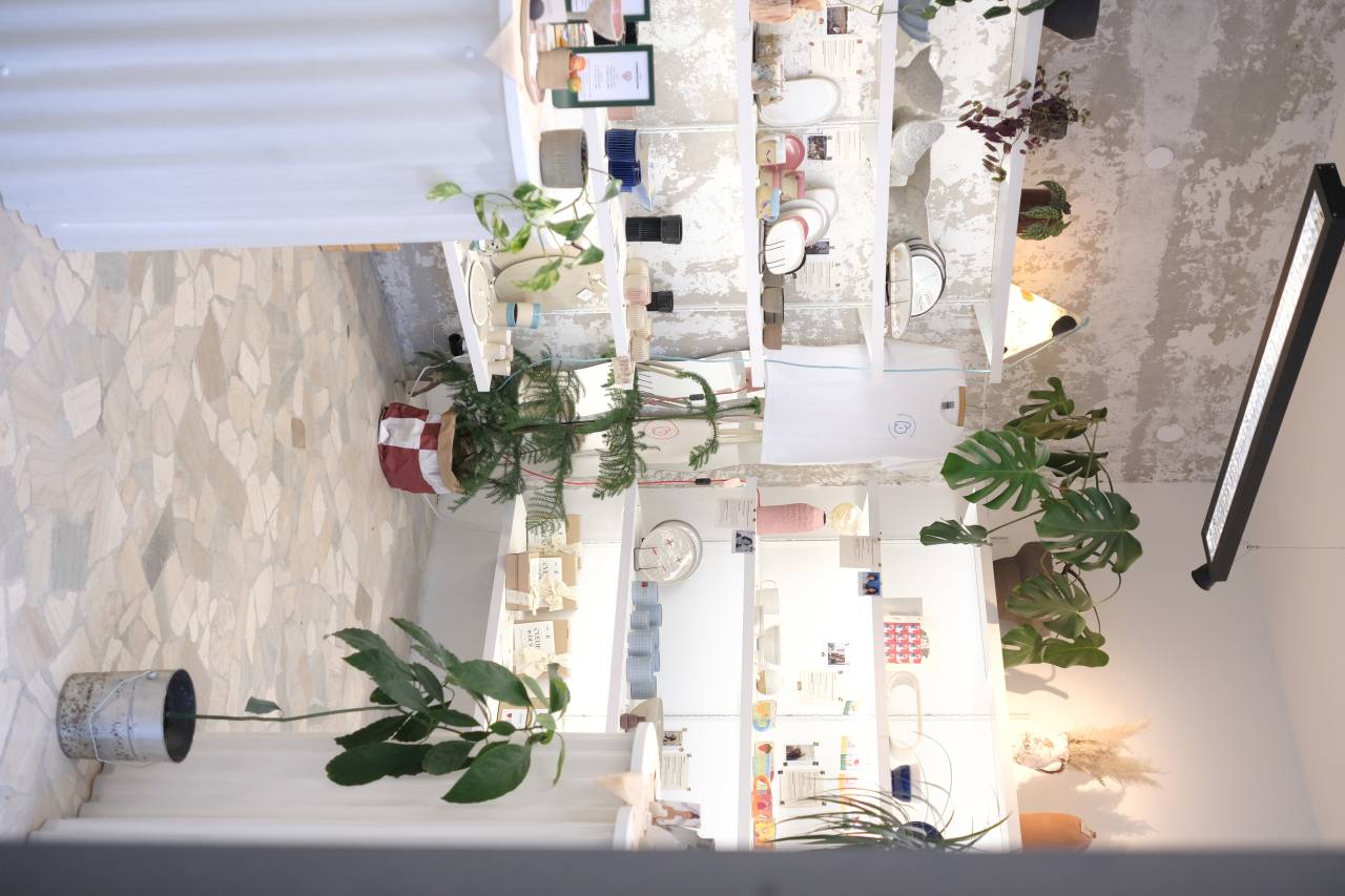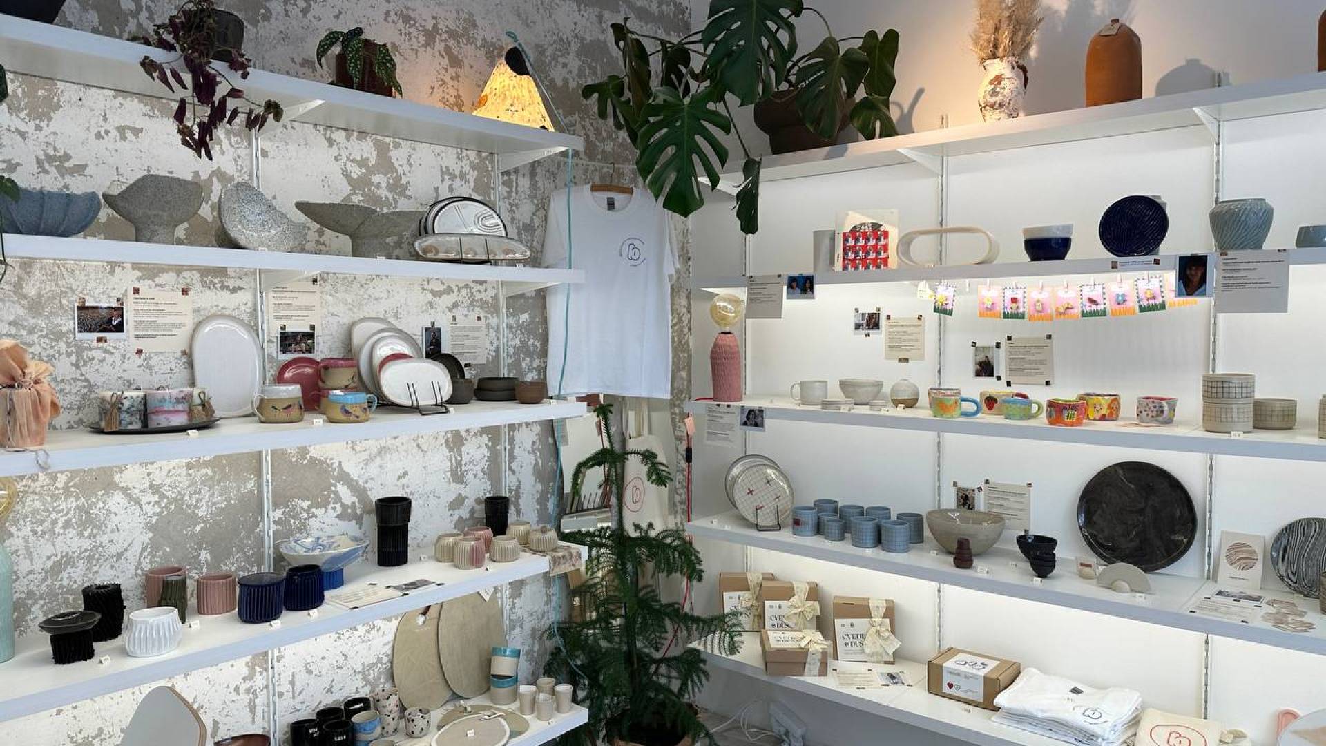 V trgovinici je trenutno na voljo največji nabor izdelkov slovenskih oblikovalk in oblikovalcev pri nas, pa tudi ostale malenkosti, ki so pripravno darilo za drage osebe, na primer suho cvetje, sveče, stvari za kožo, paketke za izdelavo in barvanje tekstila z naravnimi barvami in drugo.