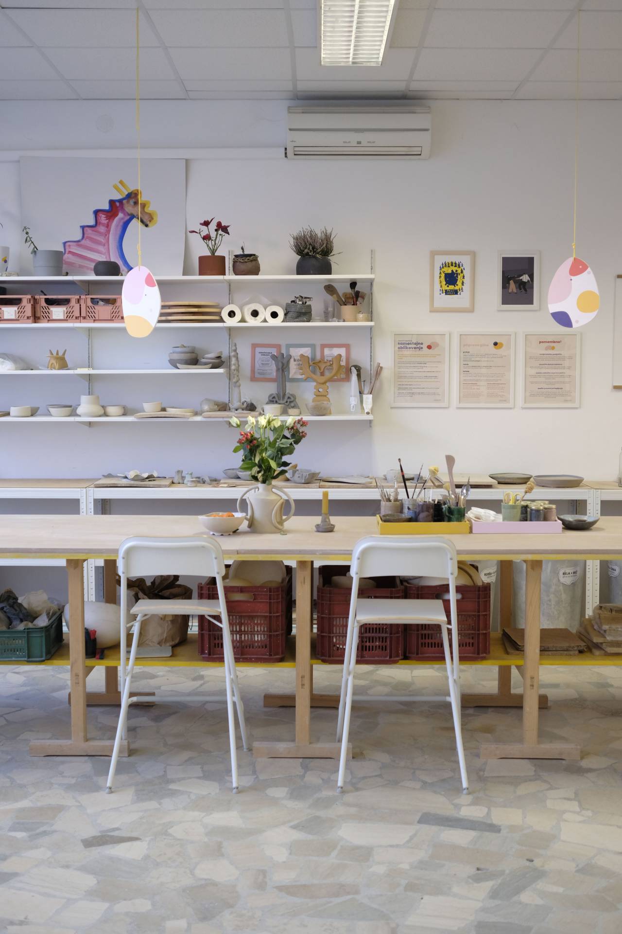 Direktorica studia Janža Dolinšek, mlada oblikovalka keramike, ki se je oblikovanja gline učila pri znani oblikovalki keramike Hani Karim, tudi soustanoviteljici Biskvita, je enodnevne in večtedenske delavnice oblikovanja gline vodila že v svojem studiu v centru mesta, na Križevniški, a v precej manjšem obsegu.