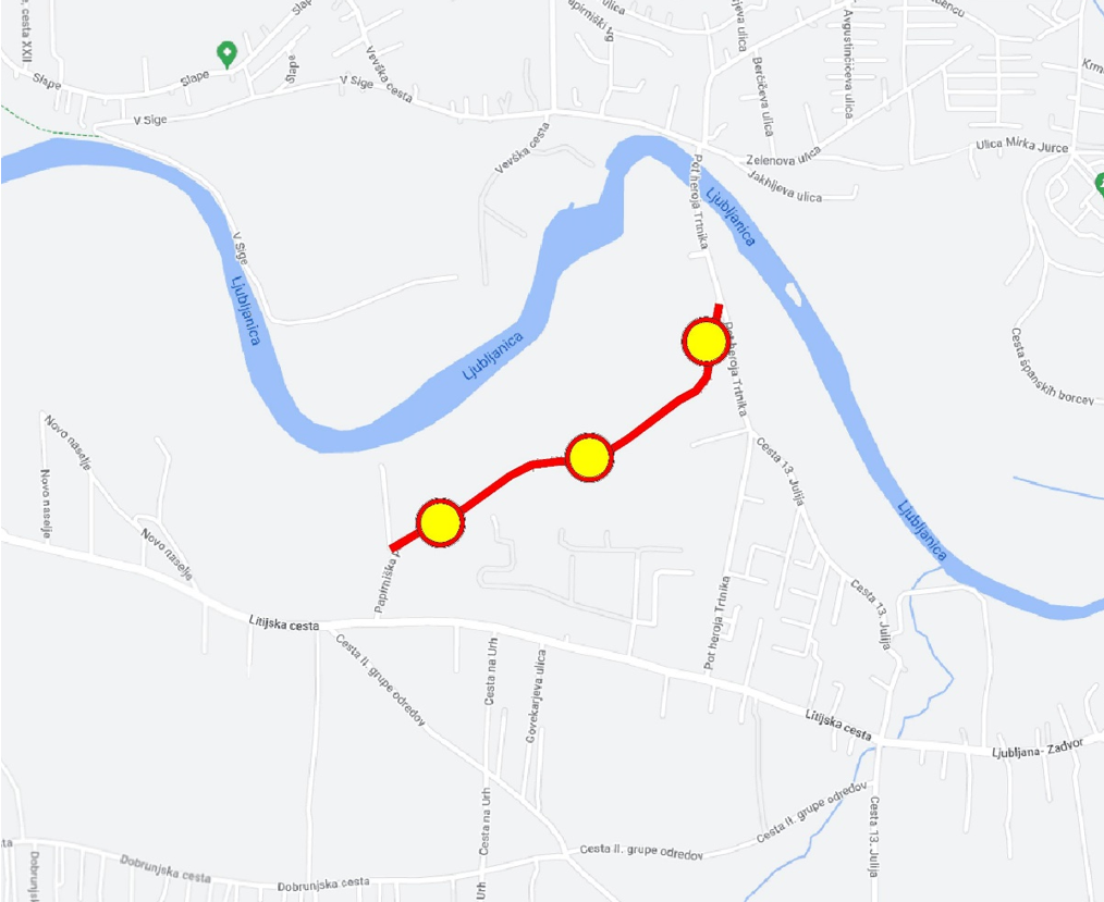 Do predvidoma 30. decembra 2023 bo zaradi gradnje elektro-kabelske kanalizacije premična popolna zapora Papirniške poti med Potjo heroja Trtnika in Litijsko cesto.