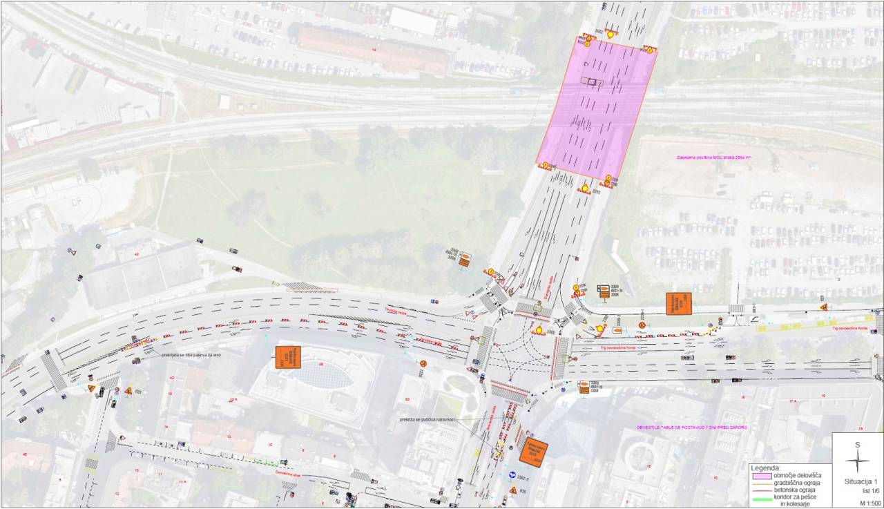 V tem času bodo prevozni štirje vozni pasovi za osebna vozila in Ljubljanski potniški promet (v vsako smer po dva), pešci in kolesarji pa bodo lahko uporabljali koridor na zahodni strani ceste.