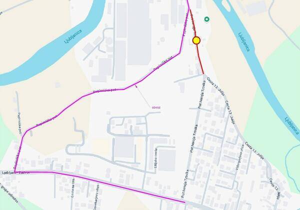 Obvoz poteka po Papirniški poti in Litijski cesti.
