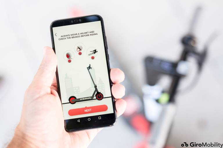 Pred samo vožnjo uporabnik potrebuje GiroMobility mobilno aplikacijo, preko katere poteka celoten postopek najema. Mobilna aplikacija bo na voljo na App Store in Google Play. Na vsakem skiroju je vidna QR koda, ki se odčita s pametnim telefonom in tako odklene izbran skiro. Na aplikacijo si uporabnik naloži dobroimetje s svoje bančne kartice, ki ga kasneje uporabi za vožnje.