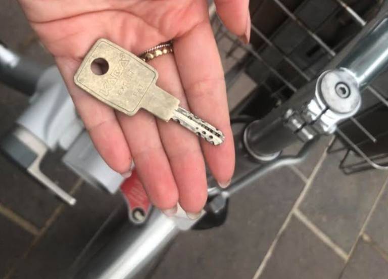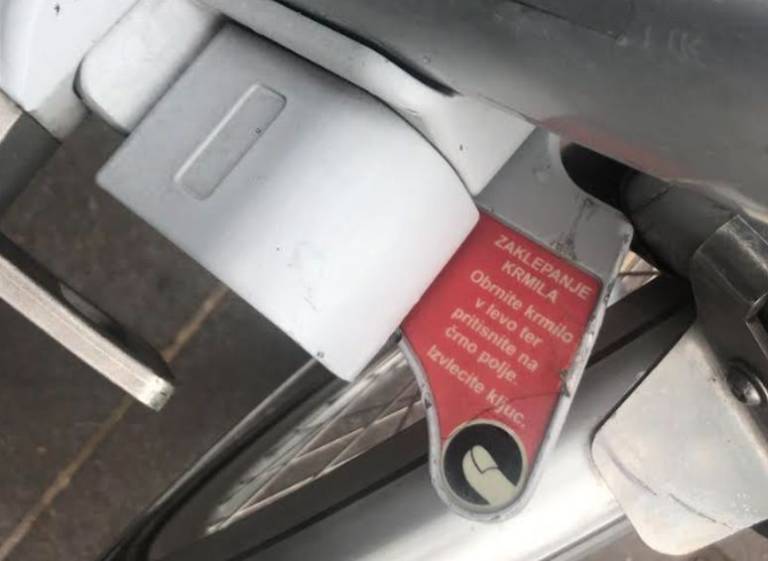 Ob sprednjem kolesu se namreč skriva zatič, ki ga potisnete, nato pa ven vzamete ključ, ga spravite v žep in skočite recimo v trgovino.