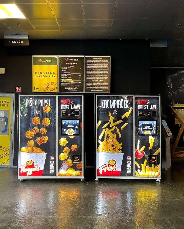 Avtomat s krompirčkom na Orožnovi ulici obratuje 24 ur na dan. Tista v Mariboxu, ki nudita hrustljav krompirček in pišek popse, sta na voljo od šeste ure zjutraj do polnoči, torej v delovnem času kompleksa Maribox.