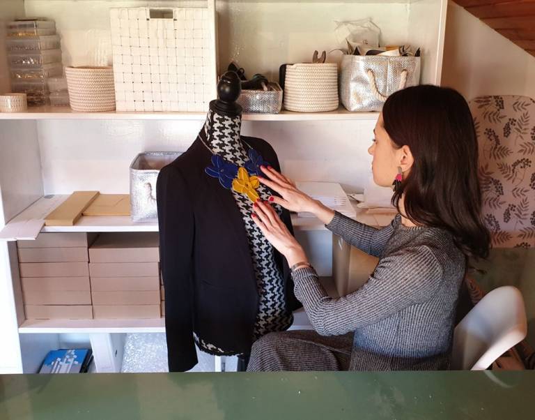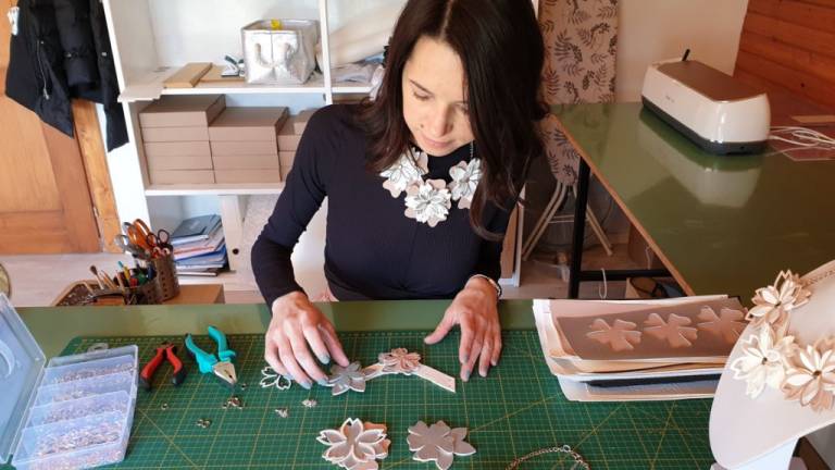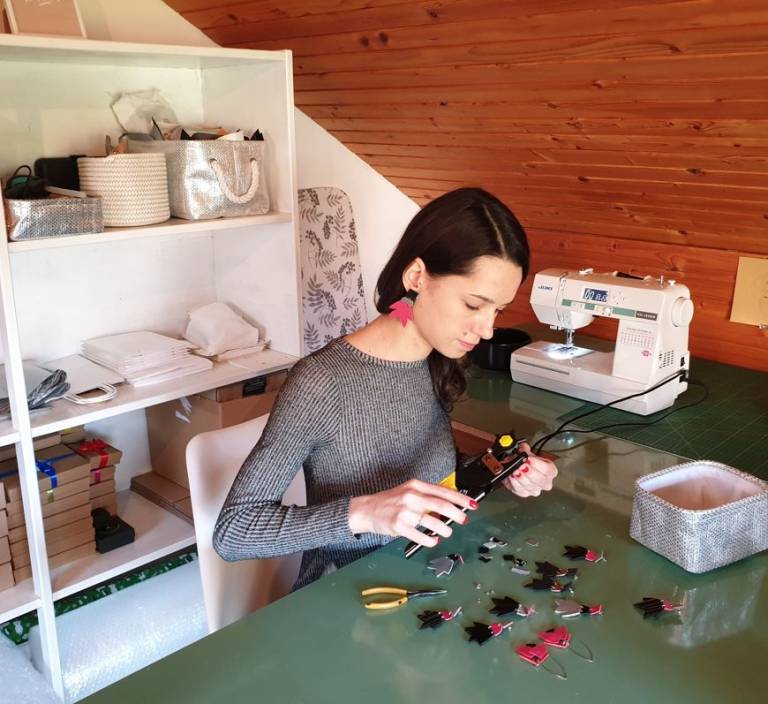 Konec lanskega leta se je, kljub temu da je bila redno zaposlena, odločila, da se v takratni službi ne vidi več. Da je preveč monotona. »Doma sem naredila delavnico in si rekla, da bom nekaj časa posvetila samo ustvarjanju modnih dodatkov,« razlaga.