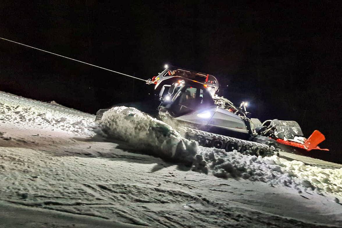 V Kranjski Gori je po deževnem zalivanju proge zapadlo pol metra snega, ki so ga vso noč obdelovali s teptalci.
