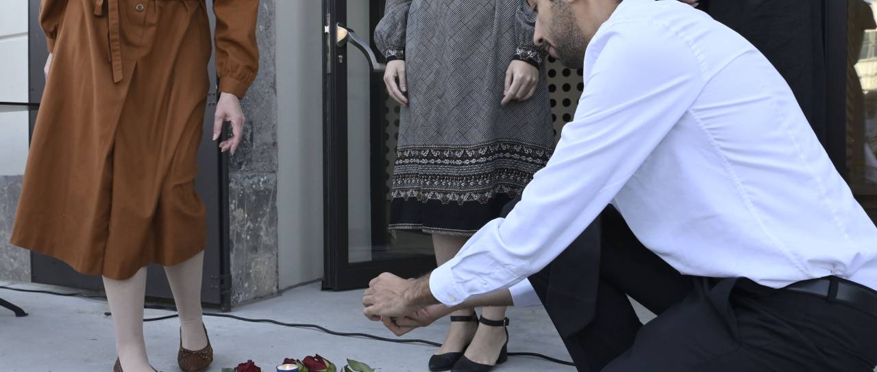 Spominski tlakovec oziroma spotikavec so položili predsednica državnega zbora Urška Klakočar Zupančič, podžupan Mestne občine Ljubljana Dejan Crnek in rabin slovenske liberalne judovske skupnosti Alexander Grodensky.