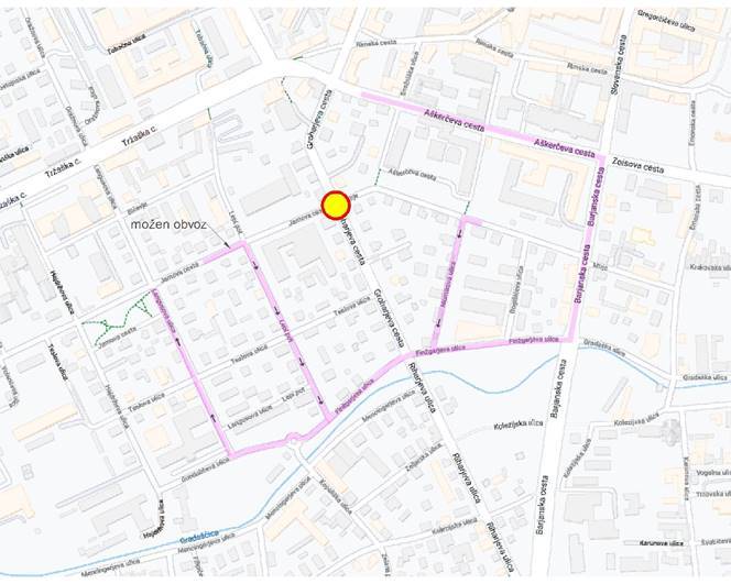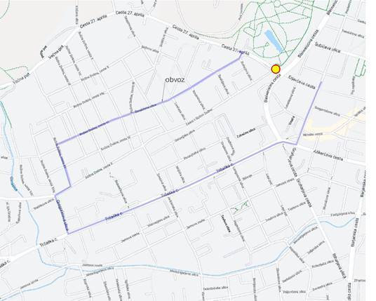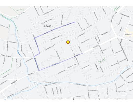 Obvoz bo po Škrabčevi ulici, Rožni dolini – cestah VI, XV in II, Gregorinovi ulici in Tržaški cesti.