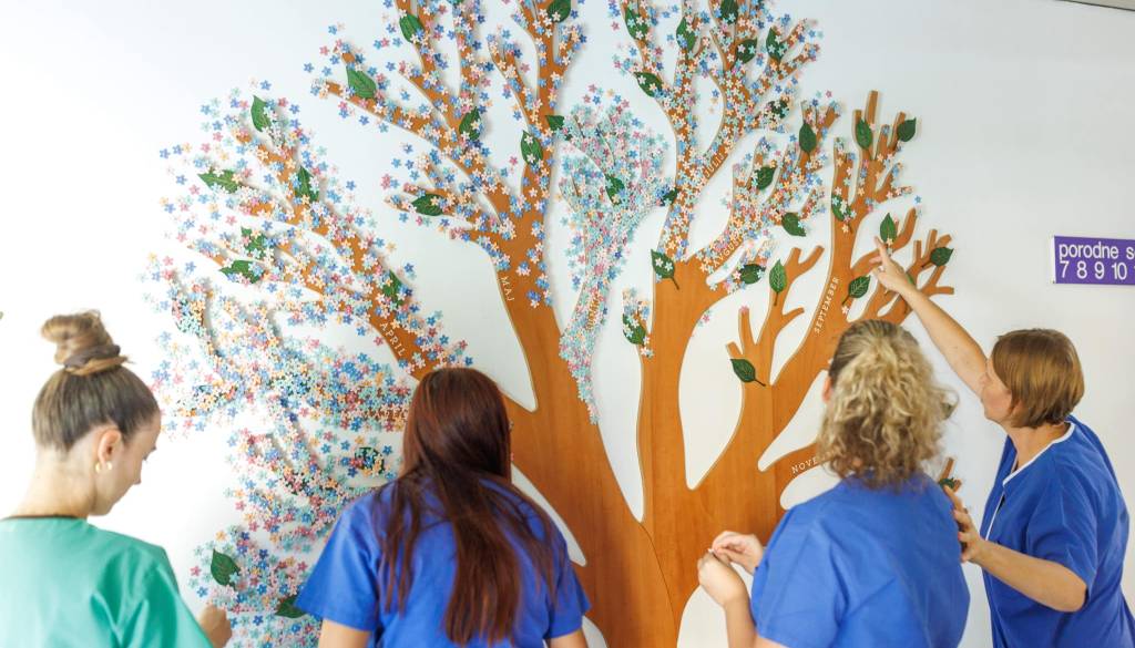 Vsak cvet na drevesu predstavlja novorojenčka in povezanost z družinami ter skrb osebja.