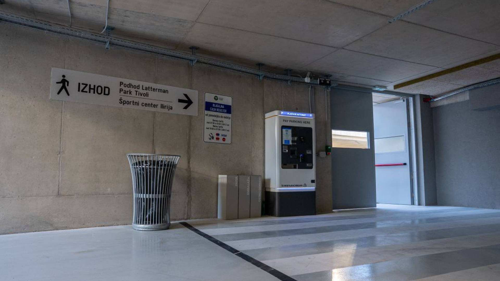 Pri izhodu uporabniki na avtomatski blagajni vnesejo registrsko številko, poravnajo parkirnino z Urbano, plačilno kartico ali gotovino, nato pa sistem samodejno odpre izhodno zapornico.