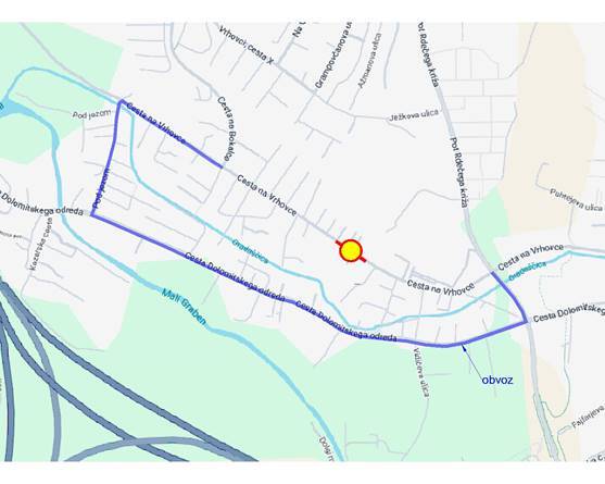 V času zapore bo promet potekal po Cesti Dolomitskega odreda, kjer bo urejena obvozna pot.