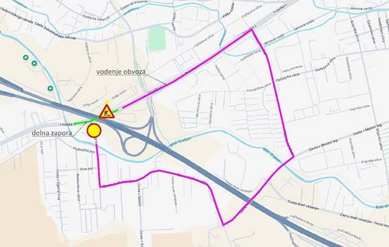 Obvoz bo potekal po Cesti dveh cesarjev in Tbilisijski ulici. V času zapore bodo ukinjena postajališča LPP Podvozna pot, Zgornji log in Cesta v Gorice.