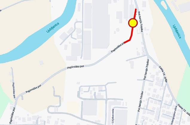 Zaradi del bo od jutri, 30. novembra, do predvidoma 11. decembra za ves promet zaprta Papirniška pot na odseku med Potjo heroja Trtnika in Litijsko cesto.