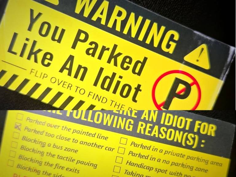 »Opozorilo! Parkirali ste kot idiot. Obrnite obvestilo, da izveste razlog.«
