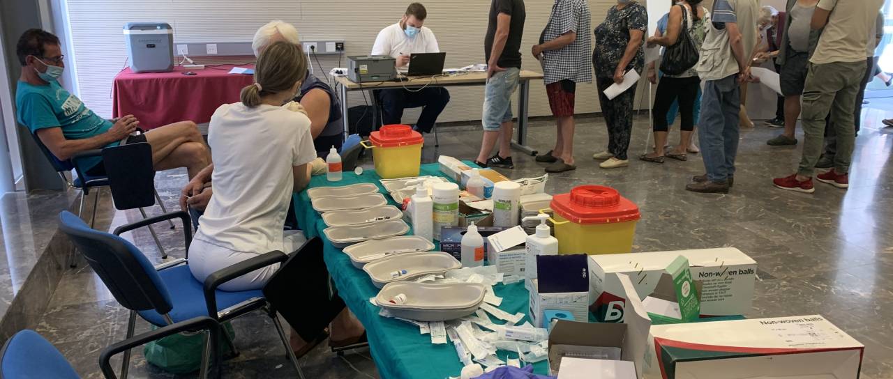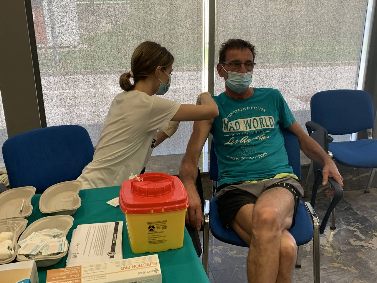 Domačini so očitno težko pričakovali cepljenje v domačem kraju.