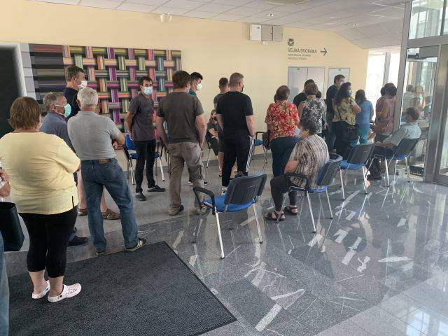 Vrsta za cepljenje se je v Majšperku pričela že na vhodu v občinsko zgradbo in se nato vila po dolgem hodniku vse do dvorane, kjer je potekalo cepljenje za nenaročene.