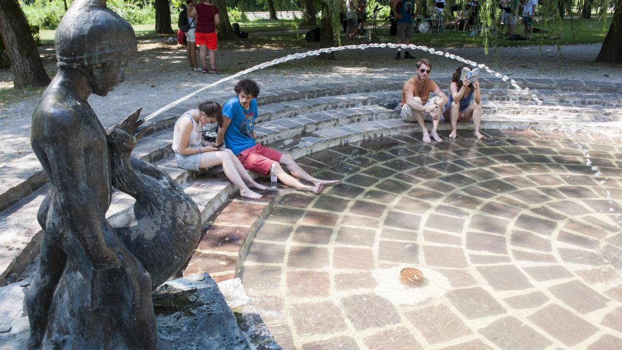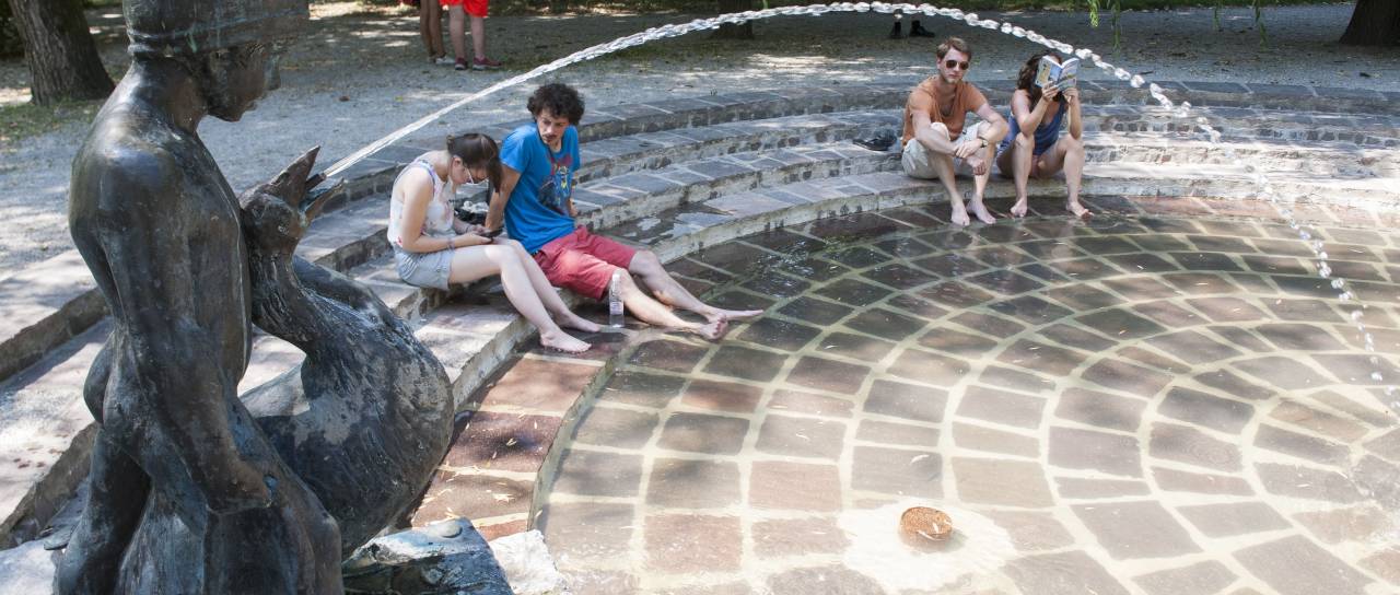 Tam tudi pijejo in jedo, smeti pa pomečejo na tla, saj košev za smeti za Bavarskim dvorom ni.