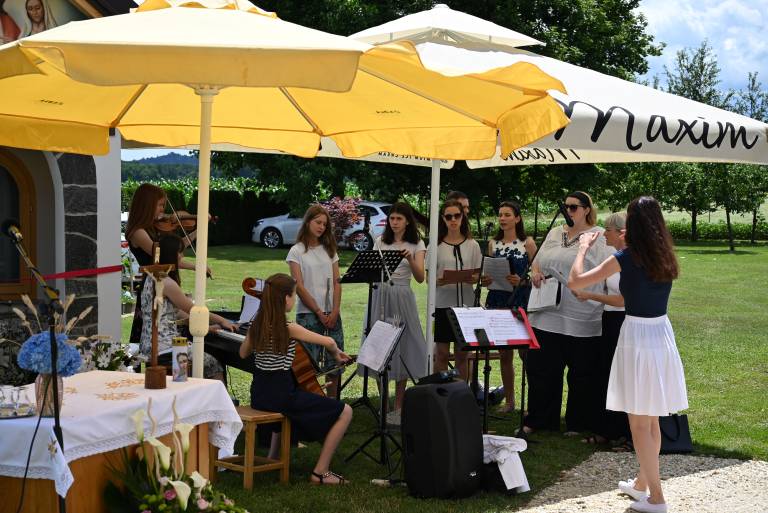 Mašo je s cerkvenim petjem obogatila pevska skupina Luč iz župnije Ljutomer. Tanja Pihlar se je nato zahvalila vsem navzočim in tistim, ki so kakorkoli pomagali pri gradnji kapelice.