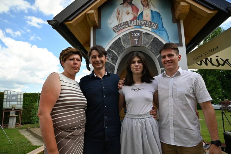 Štiričlanska družina Pihlar, ki prihaja iz Mote pri Ljutomeru se je na domačem dvorišču odločila postaviti novo kapelico v zahvalo za rojstvo otrok Dominika in Anamarije.