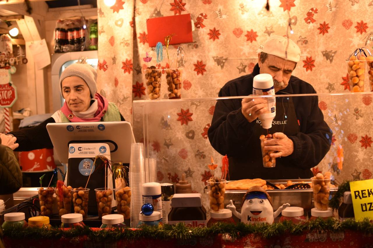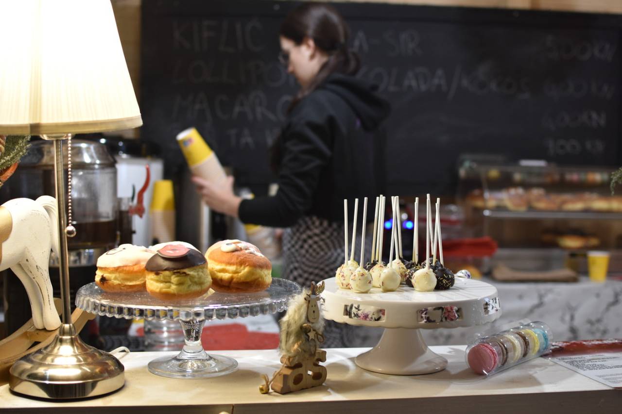 Kot se spodobi za adventni čas, je v zraku tudi vonj kuhanega vina, čaja in seveda drugih prazničnih dobrot. Sladkosnedi se lahko na stojnicah posladkajo s krofi in fritulami z najrazličnejšimi sadnimi, čokoladnimi in ostalimi prelivi.