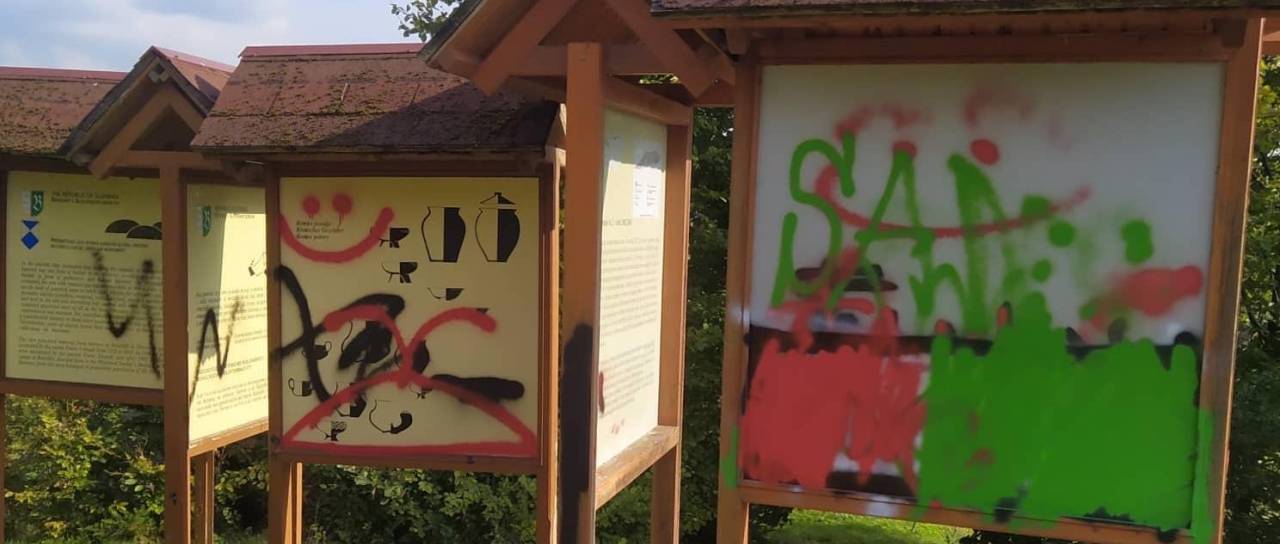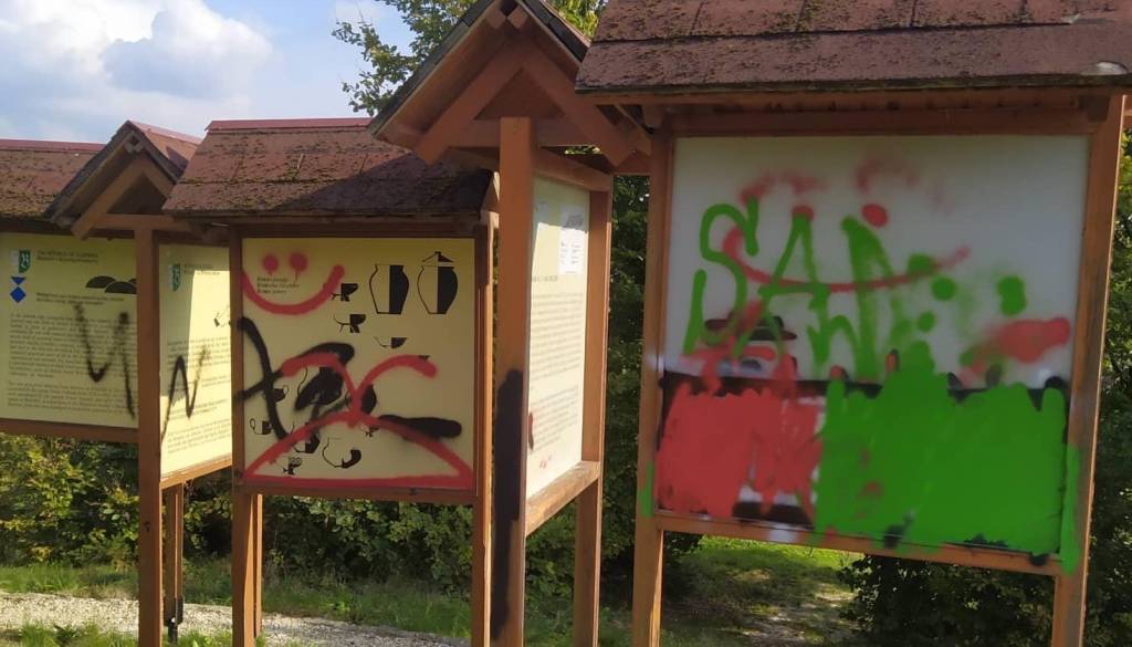V občini Benedikt so bili na delu vandali. Privoščili so si risanje grafitov na spominskem obeležju Rimskega gomilnega grobišča ter na pripadajočih informativnih tablah.