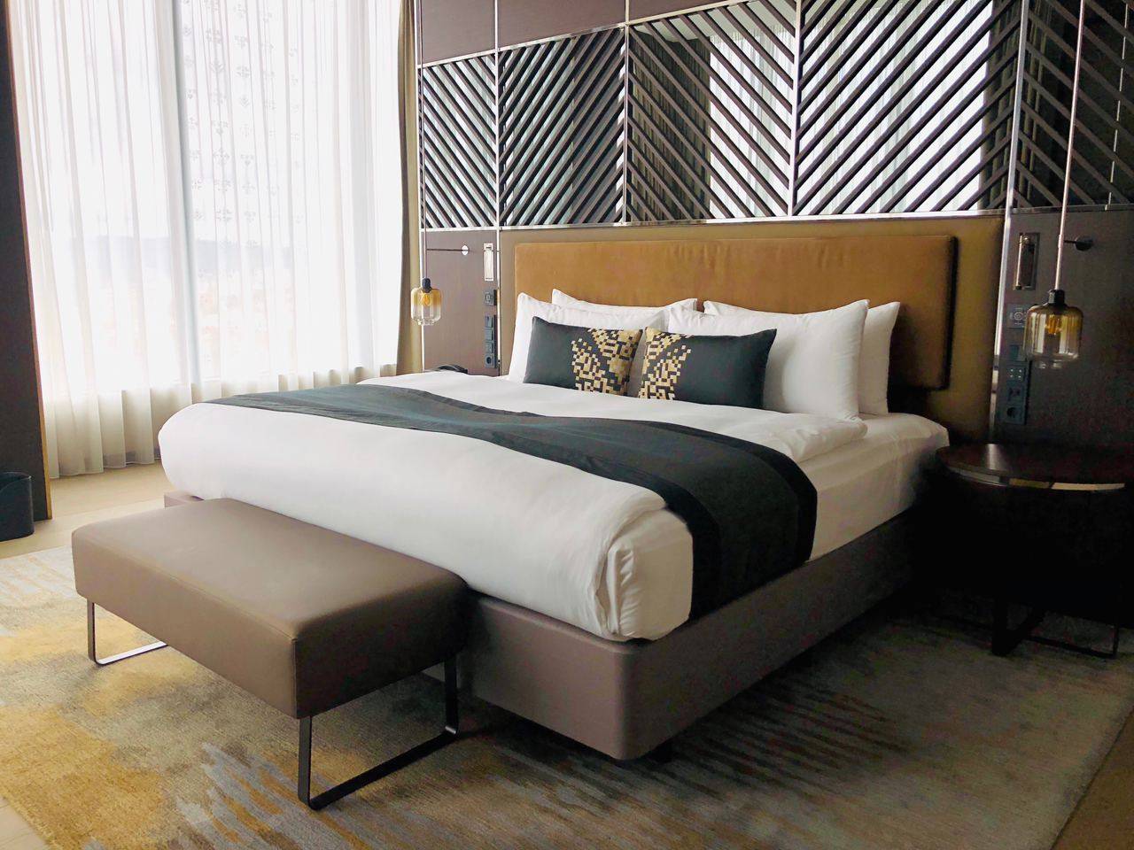 V apartmaju se nahaja največja postelja v hotelu in meri 200x220 cm. V InterContinentalu udobje najvišjega nivoja pripisujejo predvsem kakovosti spanca, zato so vsi jogiji najvišje kakovosti. Izdelani so ročno in imajo 100-letno tradicijo. Dokazano je, da 6 ur spanca na tej postelji zagotovi enako kakovost spanca kot 8 ur na drugem ležišču. Tudi posteljina je iz luksuznega materiala je narejena iz kar 1000 vozlov na kvadratni meter. Za primerjavo: navadna posteljina jih ima 100. Spanje je zato kar 10-krat bolj udobno, mehko in prijetno za kožo.