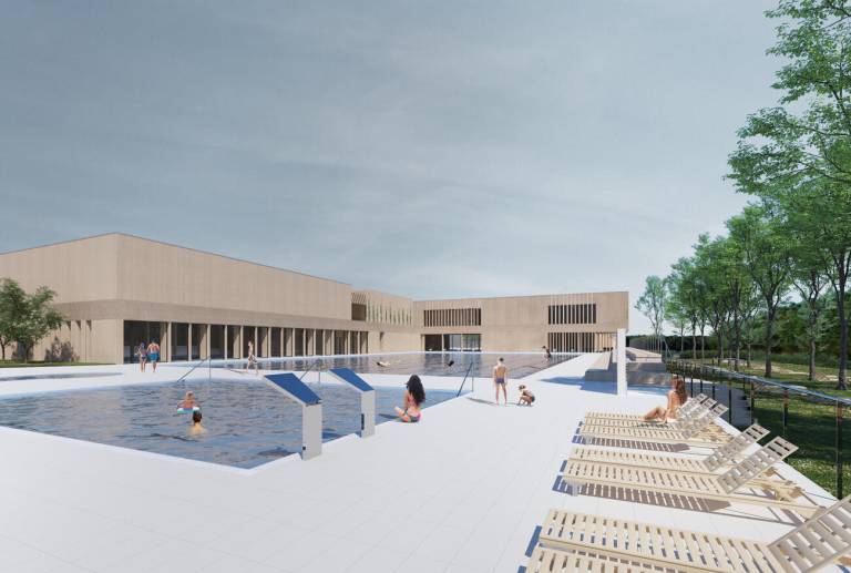 Zunanja ureditev bo zajemala bazene, obbazensko ploščad, otroško in športno igrišče ter servisni objekt. V sklopu projekta bo urejeno tudi parkirišče in cestni priključek, kar bo izboljšalo dostopnost. Prenova bo revitalizirala 10.719 kvadratnih metrov trenutno premalo izkoriščenih površin.