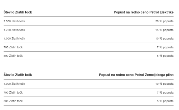 Od 15. novembra 2021 lahko Zlate točke zamenjate za naslednje popuste. Zlate točke unovčite na spletu ali pa s klicem na brezplačno številko 080 22 66.