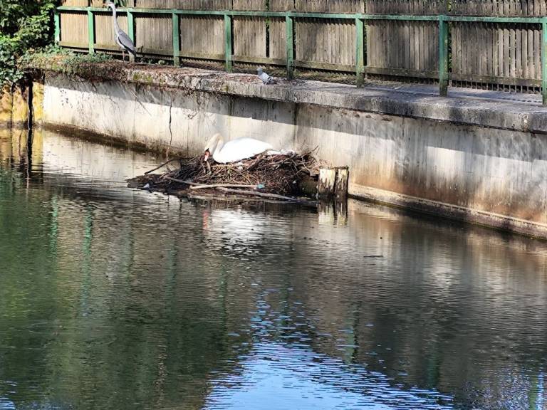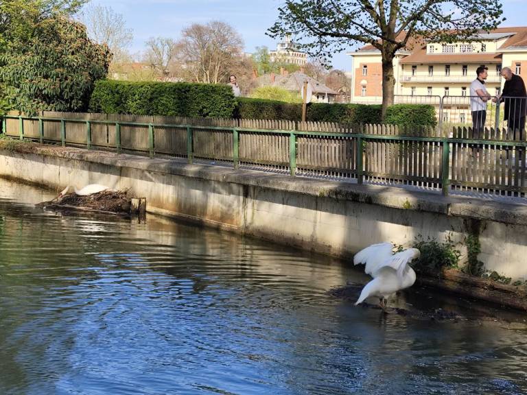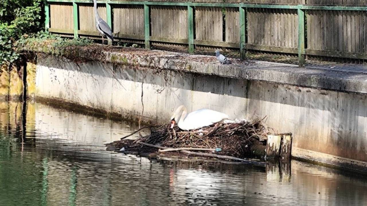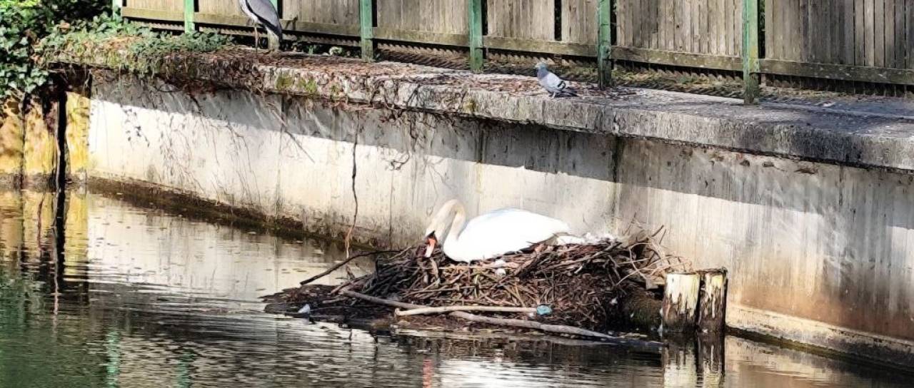 Na Tivolskem ribniku si je labodji par pričel ustvarjati gnezdo tik pod ograjo na jugovzhodni strani ribnika. Tam se lahko gnezdu preveč približamo in s tem vznemirjamo ptici. Če je motenj v času gnezdenja preveč, lahko samica gnezdo zapusti oziroma celo preneha valiti. Zaroda v takem primeru ni.
