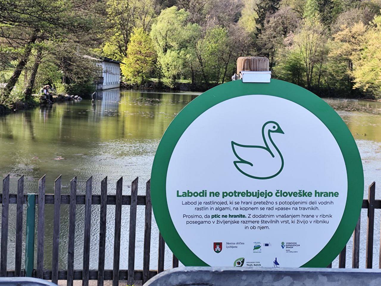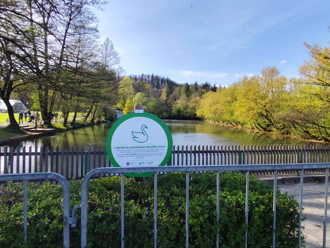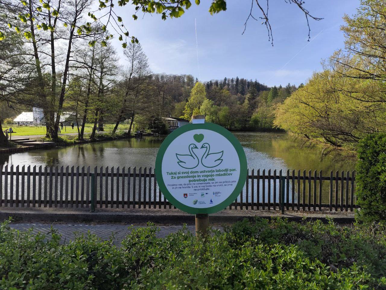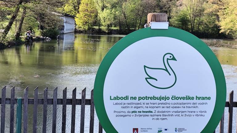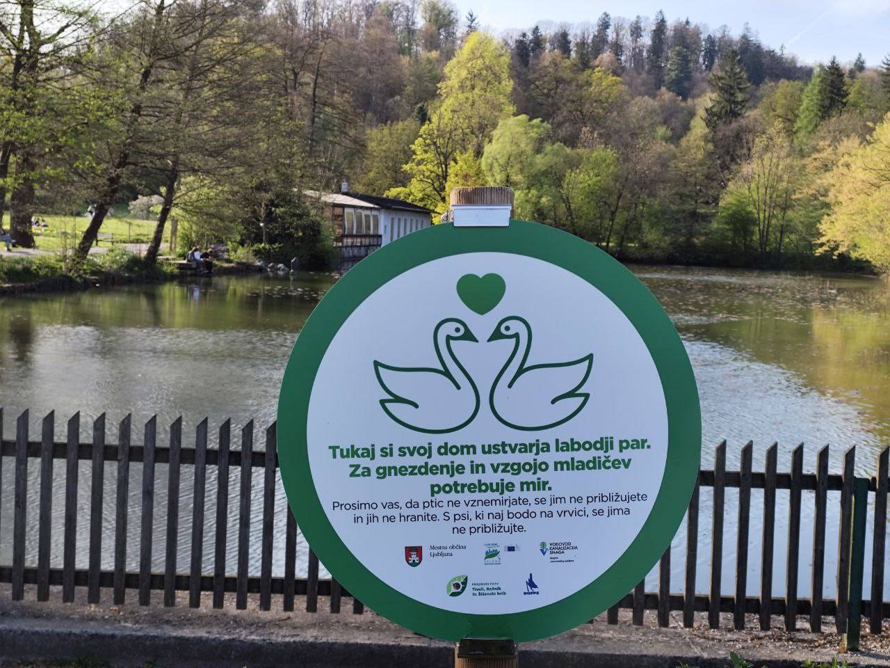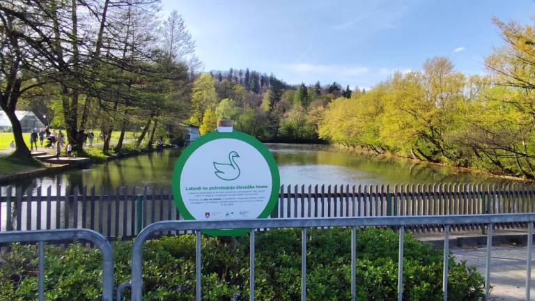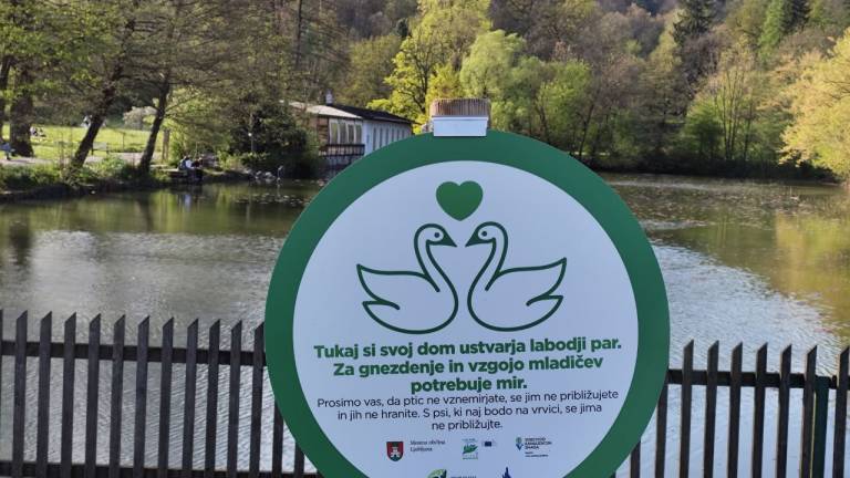 Zato je občina poleg ograj namestila še ljubke opozorilne table, s katerimi opozarjajo na labodji par in njuno gnezdo ter na to, da se divjih ptic ne hrani.