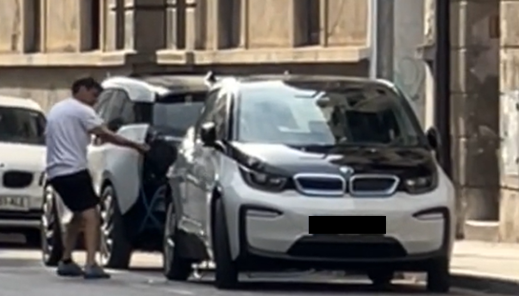 Očitno mu je težave povzročalo polnjenje BMW-ja, saj je priključeni kabel dodobra obrcal, nato pa odšel in me hojo sredinec uperil nekam gor, kot da bi požugal višji sili ali zvedavemu opazovalcu.