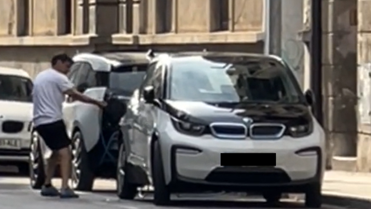 Na družbenem omrežju TikTok se je pojavil posnetek moškega, ki se je, sodeč po opravi, na topel dan v prestolnici znesel nad električnim avtomobilom.