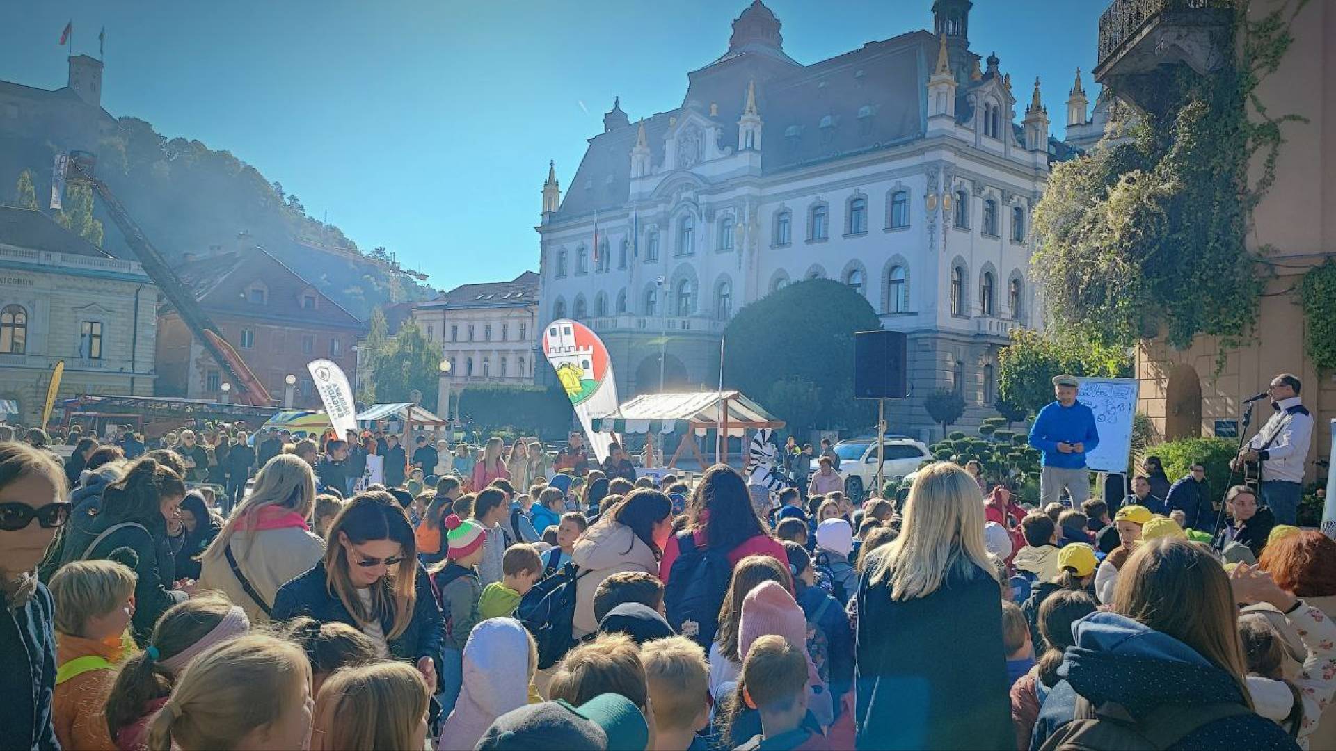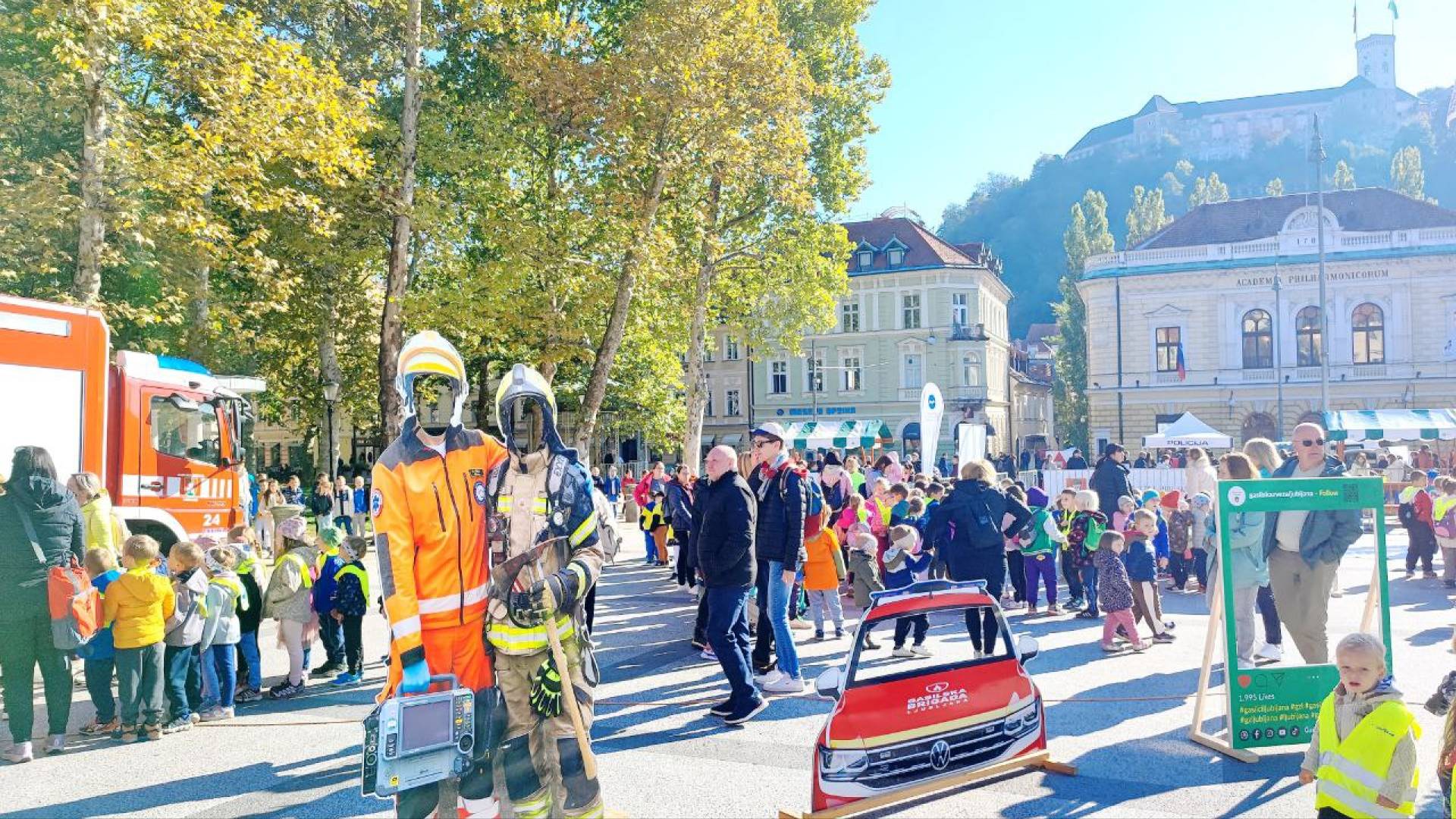 Kongresni trg je bil danes dopoldne poln radovednih otrok, ki so se veselili prikaza najrazličnejših gasilskih in drugih varnostnih veščin.