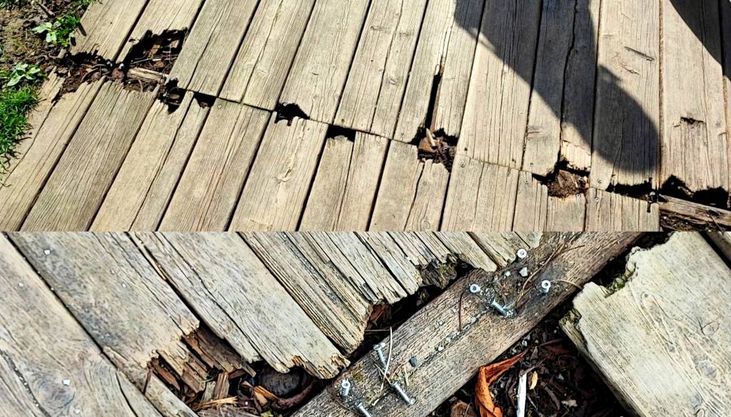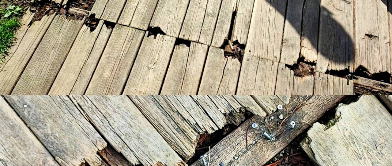 O stanju lesene pešpoti smo poročali že aprila, a se od takrat do danes ni spremenilo nič.