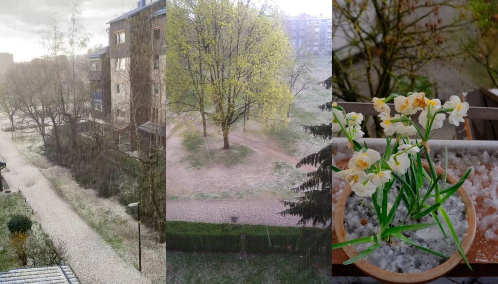 Nevihta, ki je v poznih popoldanskih urah zajela Ljubljano, je s seboj prinesla tudi sodro in točo.