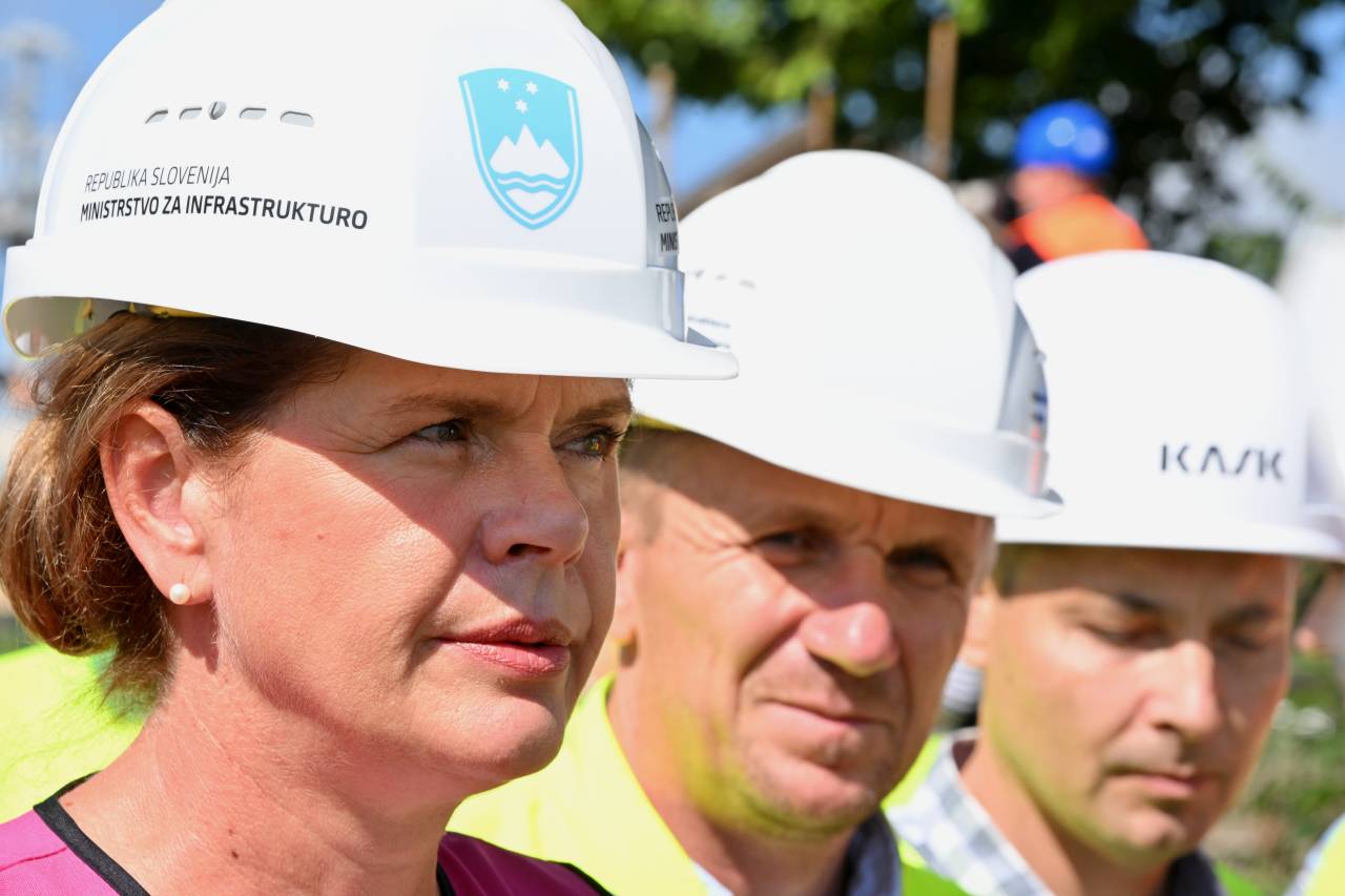 Ta je na eno trenutno največjih železniških projektov v delu prišla v športnih copatih in čelado z grbom ter napisom 'MINISTRCA'.